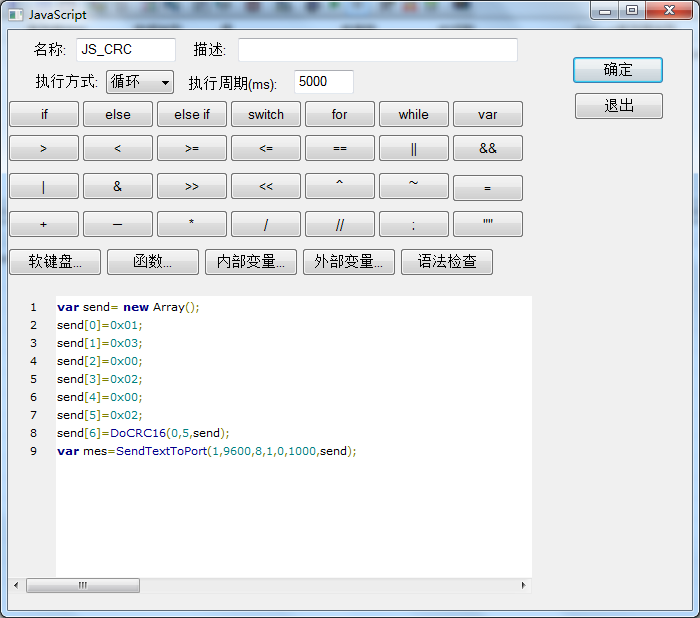 DoCRC16(a,b,c)函数是通过网关中的JS脚本实现对指定报文数组进行CRC16校验,输出为个 2 字节的 CRC16 校验。