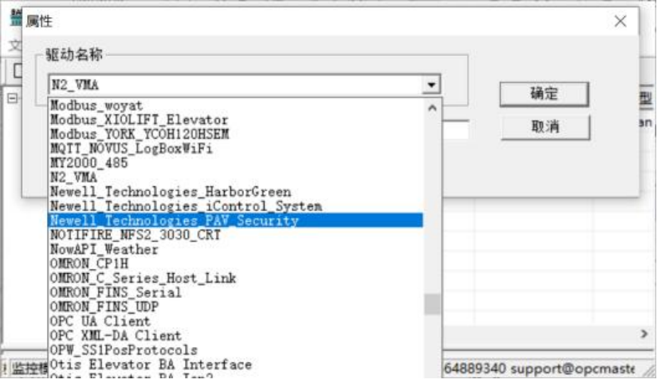 添加好驱动后, 选择新建通道, Newell_Technologies_PAV_Security ,以串口方式通信, 以串口方式通讯,默认串口 1,默认传输波特率 9600bps,数据格式为 8 数据位, 1 停止位, 无校验。默认超时时间为 1500ms。如下图: