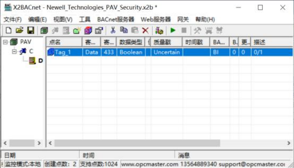 在建立点位的时候, 寄存器类型为 Data,寄存器地址为每个参数代码。以下为点位部 分截图。如图 2-286-5。