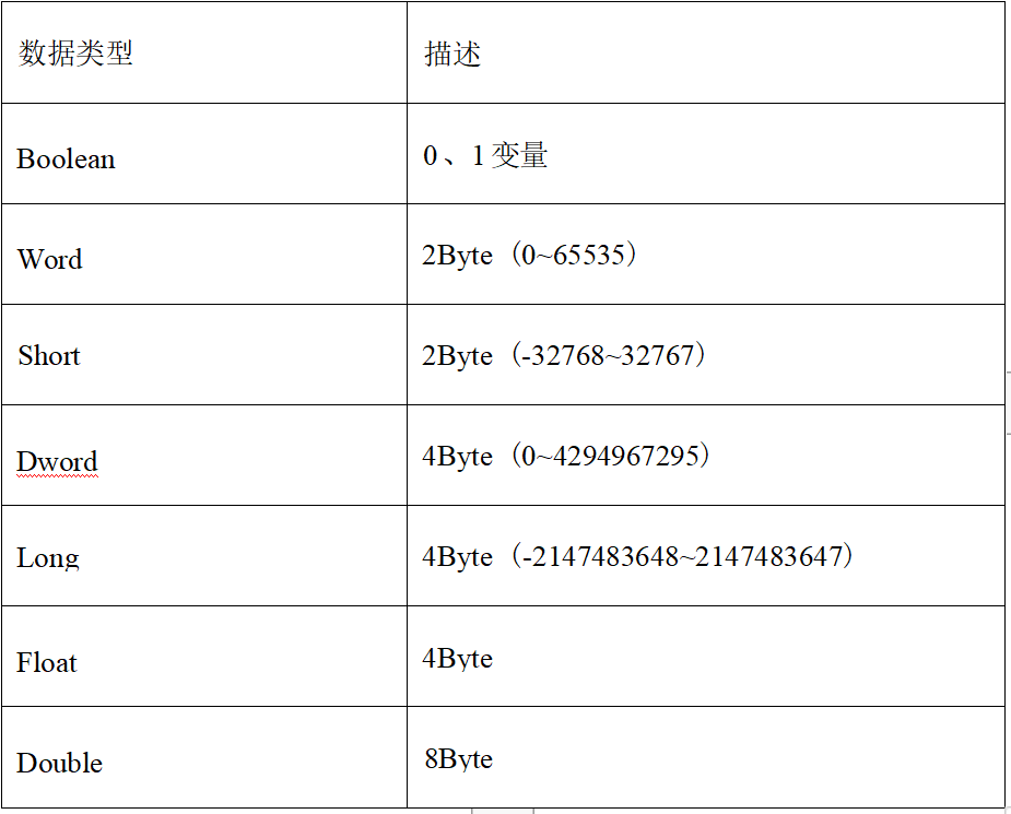采集端支持的数据类型建议建立标签的时候, 数据类型选择 Short。如下表: